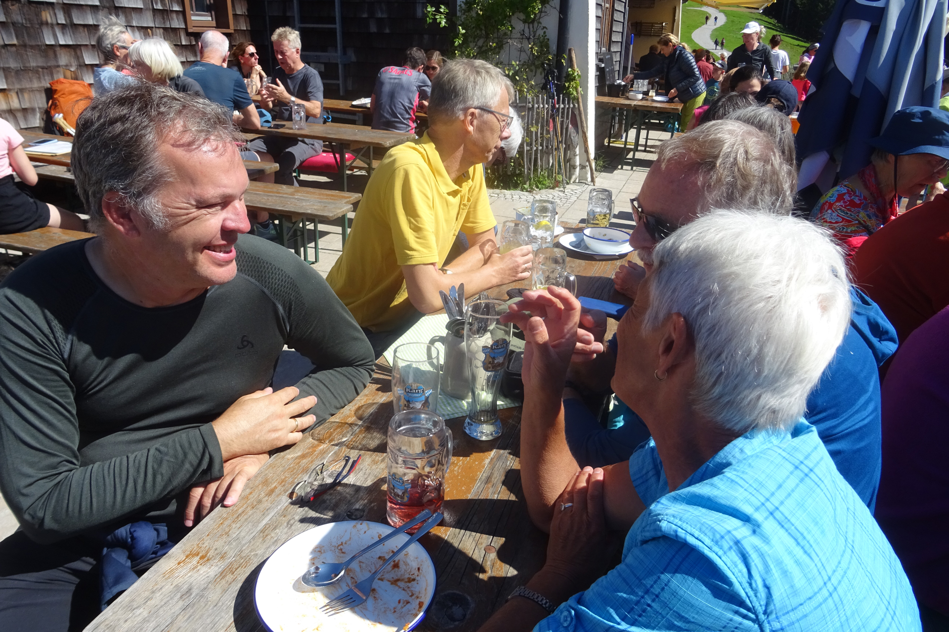 Der Blick weit über die bayerischen Seen war umwerfend. Nach Besteigung des hinteren Hörndls trafen sich alle in der Hütte zur Jause.