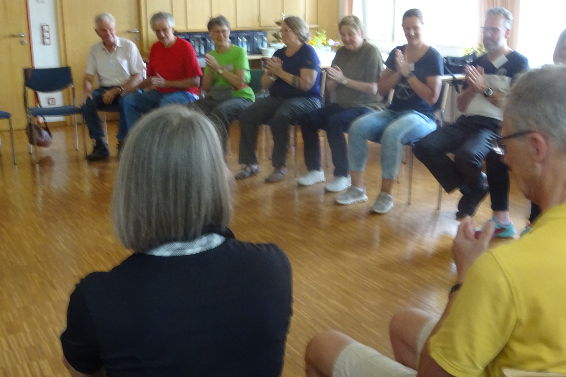 Zur Lockerung der Muskeln und Gelenke trug die Übungseinheit Rhythmus und Bewegung mit musikalischer Untermalung, moderiert von G. Zimmer, bei. Zur Musik der Fledermaus-Quadrille kamen sich die Seminarteilnehmer schnell näher.