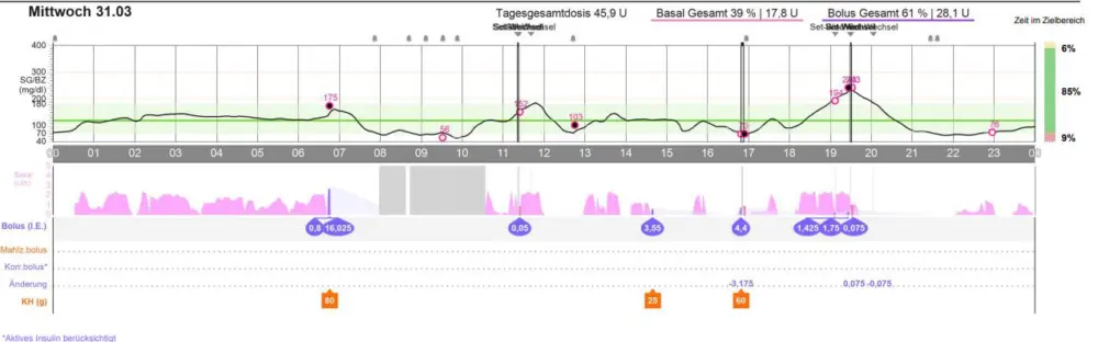Neben der emotionalen Umstellung bedeutet aber der Start in die automatisierte Therapie, dass ab sofort die Pumpe einen Teil der Therapie leitet. Damit das gut funktioniert, muss die Pumpe die Therapie aber auf Basis guter Informationen durchführen. Das ist das Gleiche wie wir es im Umgang mit Computern kennen: Die Ergebnisse sind immer nur so präzise wie die Eingaben.