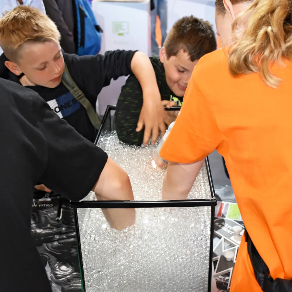 Phil und Leander sind bei Typ-F-Angeboten der Diabetiker Niedersachsen ein unzertrennliches Duo und haben die IdeenExpo größtenteils gemeinsam erkundet. Neben der Faszination für schnelle Autos stieß auch das klassische Handwerk auf ihr Interesse. Dennoch gehen ihre Berufswünsche in ganz andere Richtungen.